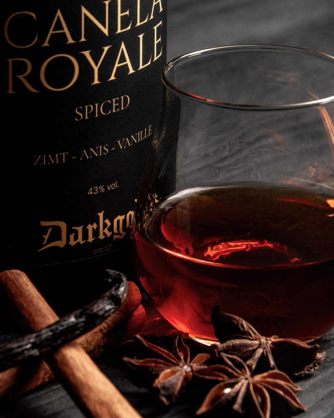 For DARKGOLD, we select essences with character: Ceylon cinnamon, star anise, and Bourbon vanilla, complemented by lemon and lime notes and select herbs. Each component is individually tested, gently extracted, and blended in small batches until warmth, spice, and clarity are perfectly balanced. We work without artificial flavorings or colorings; purity, resting time, and documented provenance ensure the recognizable signature in the glass. This creates a profile that feels natural: precise, elegant, and consistently excellent.